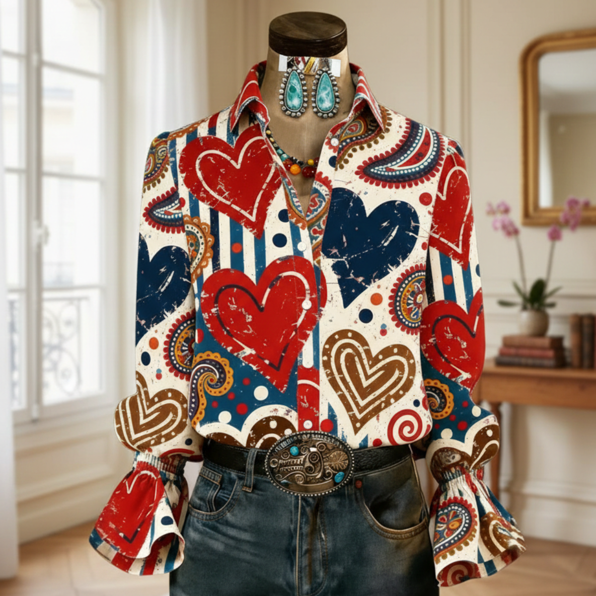 Chemiser Vintage À Imprimé Cœur